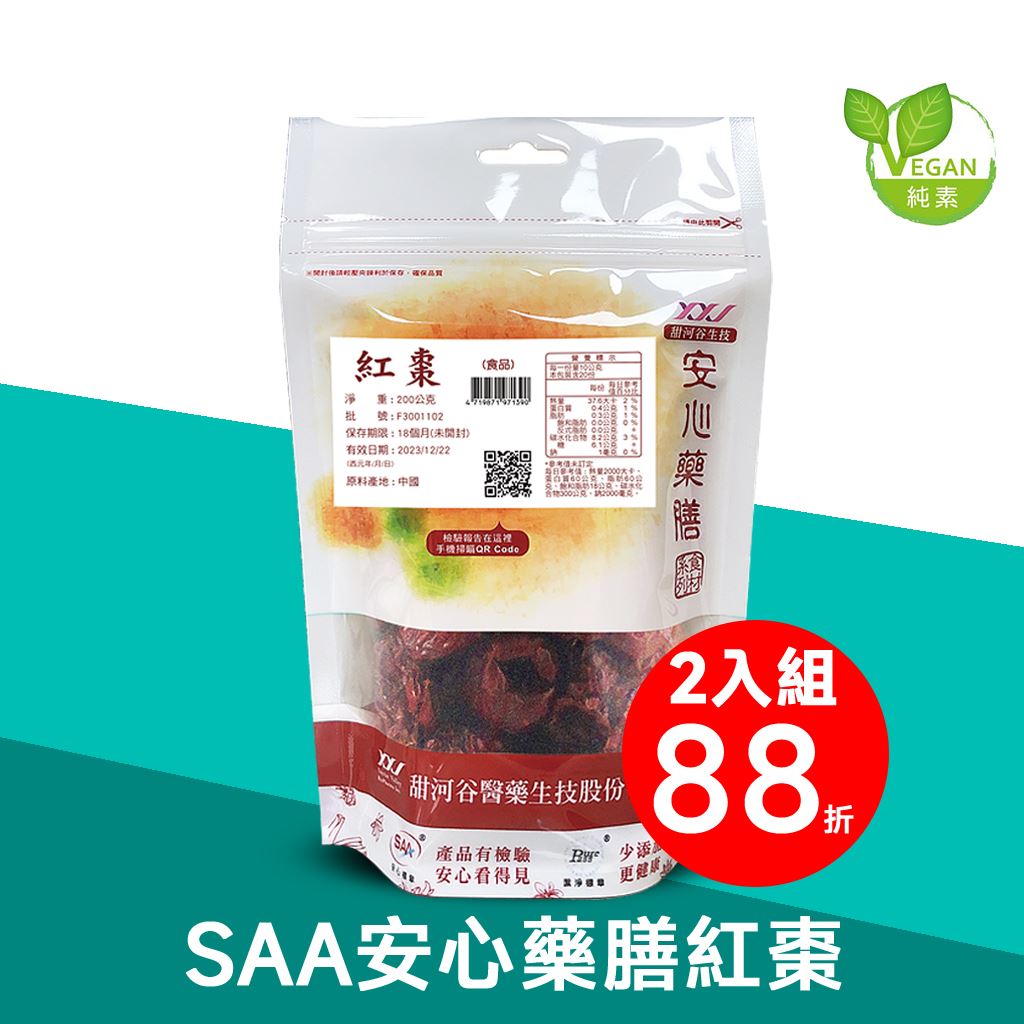 Ans : ❶ SAA安心藥膳紅棗每一批需依據台灣中藥典(Taiwan Herbal Pharmacopeia,THP)進行每一項檢驗標準。 ❷ 由G.M.P中藥廠嚴謹把關與基源品種鑑定。 ❸ 每一批皆通過農藥殘留、二氧化硫、黃麴毒素、重金屬檢驗。 ❹ 檢驗報告以手機掃瞄包裝QR code即可一目了然。 ❺ SAA安心藥膳紅棗已去籽,去籽的優點請參考紅棗小常識。 ❻ SAA安心藥膳紅棗經充分乾燥,水份控制小於10%,足量秤重,物超所值。